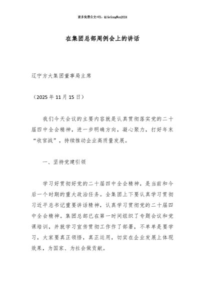 / 【七哥公文】2025年:在集团总部周例会上的讲话_副本+更多免费公文+VX:QiGeGongWen2024