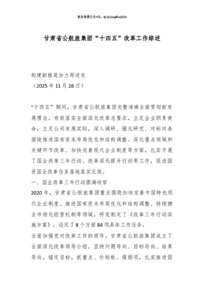 / 【七哥公文】2025年:甘肃省公航旅集团“十四五”改革工作综述_副本+更多免费公文+VX:QiGeGongWen2024