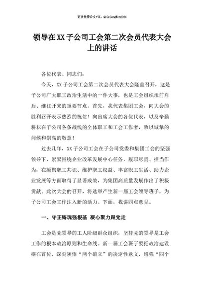 / 【七哥公文】2025年:领导在XX子公司工会第二次会员代表大会上的讲话+更多免费公文+VX:QiGeGongWen2024