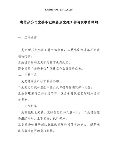 【七哥公文】2025年:电信分公司党委书记抓基层党建工作述职报告提纲_副本+更多免费公文+VX:QiGeGongWen2024