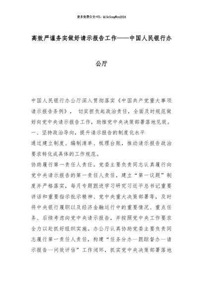 【七哥公文】2025年:高效严谨务实做好请示报告工作——中国人民银行办公厅_副本+更多免费公文+VX:QiGeGongWen2024