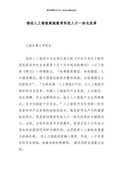 / 【七哥公文】2025年:推动人工智能赋能教育科技人才一体化改革_副本+更多免费公文+VX:QiGeGongWen2024