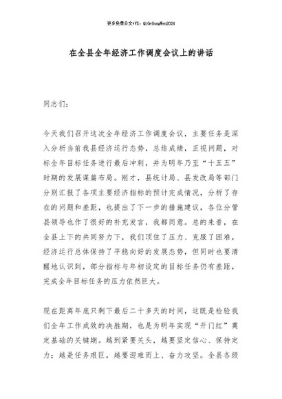 / 【七哥公文】2025年:在全县全年经济工作调度会议上的讲话_副本+更多免费公文+VX:QiGeGongWen2024