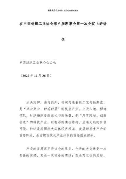 【七哥公文】2025年:在中国针织工业协会第八届理事会第一次会议上的讲话_副本+更多免费公文+VX:QiGeGongWen2024
