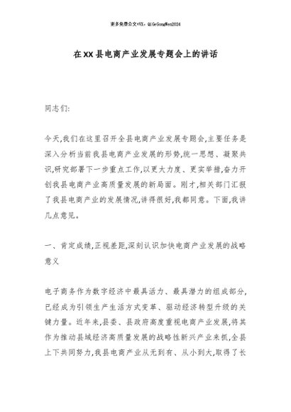 / 【七哥公文】2025年:在XX县电商产业发展专题会上的讲话_副本+更多免费公文+VX:QiGeGongWen2024
