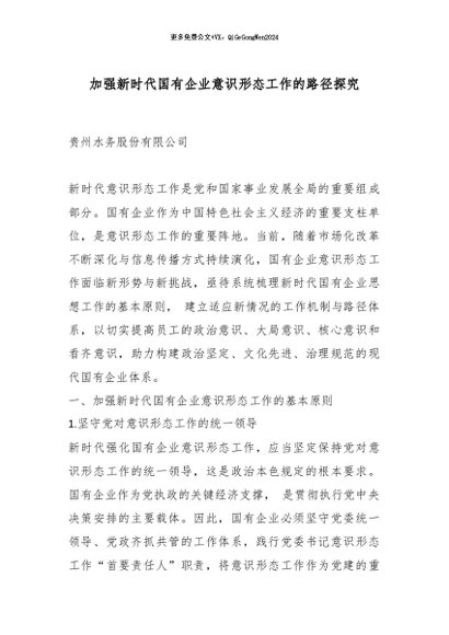 / 【七哥公文】2025年:加强新时代国有企业意识形态工作的路径探究_副本+更多免费公文+VX:QiGeGongWen2024