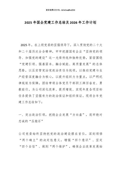 【七哥公文】2025年:2025年国企党建工作总结及2026年工作计划_副本+更多免费公文+VX:QiGeGongWen2024