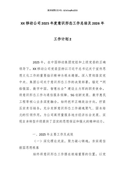 【七哥公文】2025年:XX移动公司2025年度意识形态工作总结及2026年工作计划2_副本+更多免费公文+VX:QiGeGongWen2024