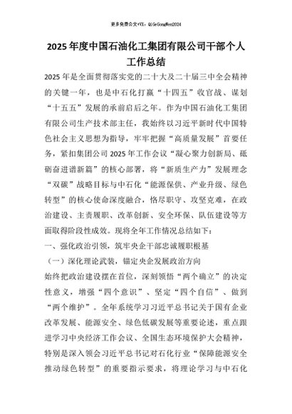 【七哥公文】2025年:2025年度中国石油化工集团有限公司干部个人工作总结+更多免费公文+VX:QiGeGongWen2024