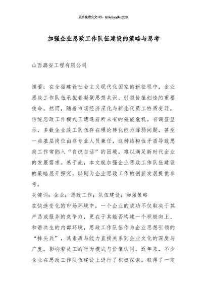 / 【七哥公文】2025年:加强企业思政工作队伍建设的策略与思考_副本+更多免费公文+VX:QiGeGongWen2024