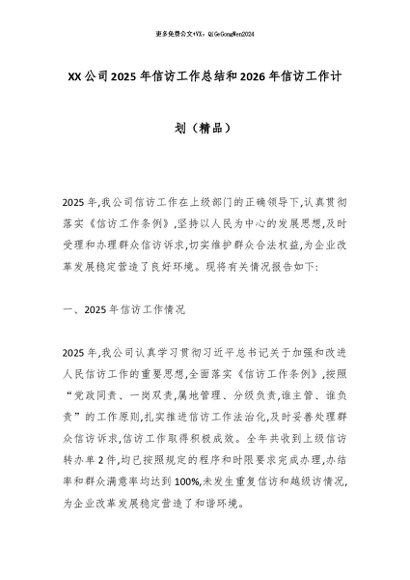 【七哥公文】2025年:XX公司2025年信访工作总结和2026年信访工作计划(精品)_副本+更多免费公文+VX:QiGeGongWen2024