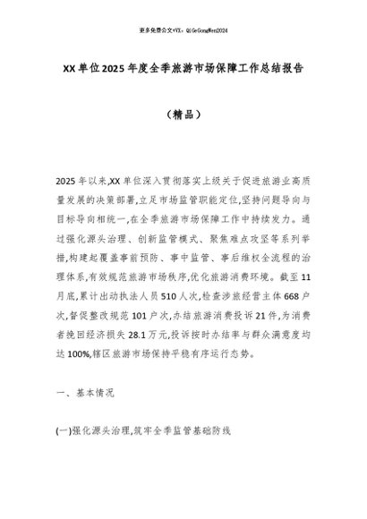 【七哥公文】2025年:XX单位2025年度全季旅游市场保障工作总结报告(精品)_副本+更多免费公文+VX:QiGeGongWen2024