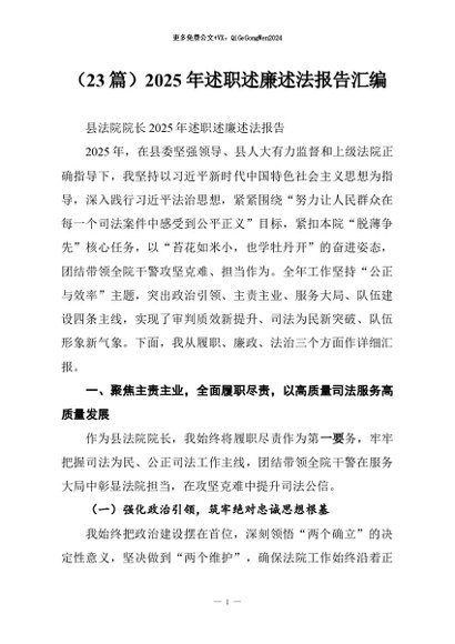 / 【七哥公文】2025年:(23篇)2025年述职述廉述法报告汇编+更多免费公文+VX:QiGeGongWen2024