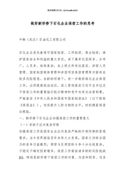 / 【七哥公文】2025年:做好新形势下石化企业保密工作的思考_副本+更多免费公文+VX:QiGeGongWen2024