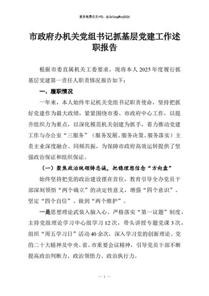 / 【七哥公文】2025年:市政府办机关党组书记抓基层党建工作述职报告+更多免费公文+VX:QiGeGongWen2024