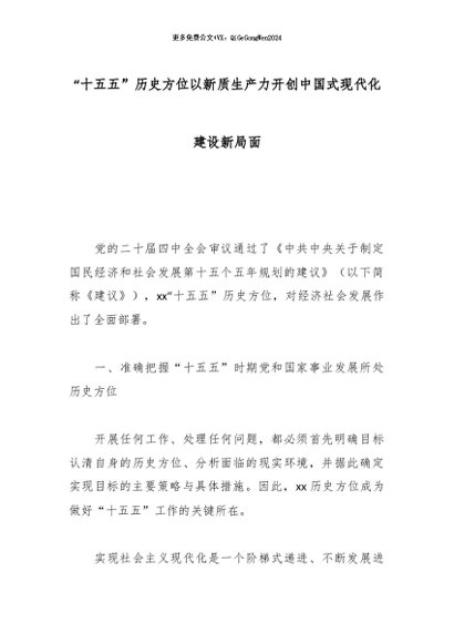 【七哥公文】2025年:“十五五”历史方位以新质生产力开创中国式现代化建设新局面_副本+更多免费公文+VX:QiGeGongWen2024
