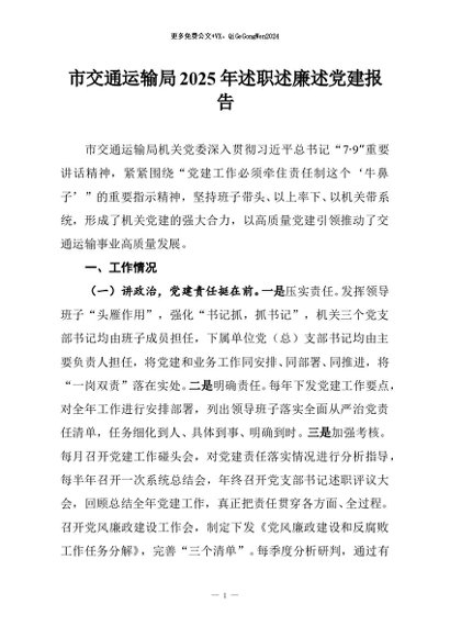 / 【七哥公文】2025年:市交通运输局2025年述职述廉述党建报告+更多免费公文+VX:QiGeGongWen2024