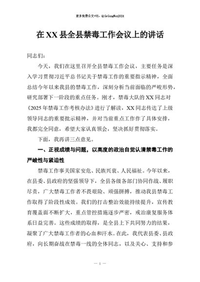 / 【七哥公文】2025年:在XX县全县禁毒工作会议上的讲话+更多免费公文+VX:QiGeGongWen2024