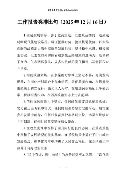 / 【七哥公文】2025年:工作报告类排比句(2025年12月16日)+更多免费公文+VX:QiGeGongWen2024