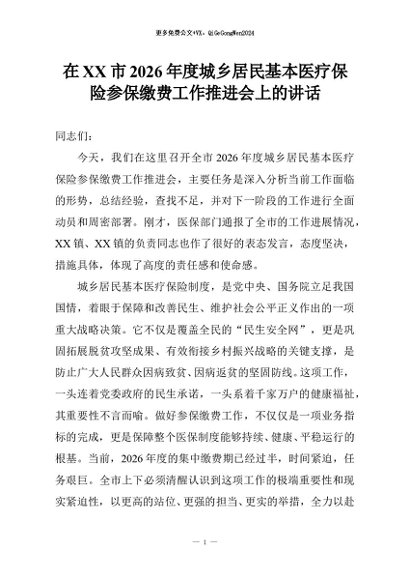 【七哥公文】2025年:在XX市2026年度城乡居民基本医疗保险参保缴费工作推进会上的讲话+更多免费公文+VX:QiGeGongWen2024