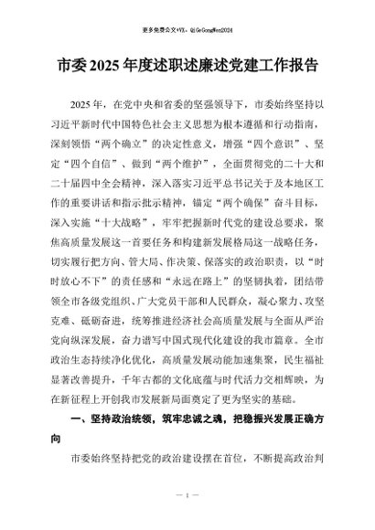 / 【七哥公文】2025年:市委2025年度述职述廉述党建工作报告+更多免费公文+VX:QiGeGongWen2024