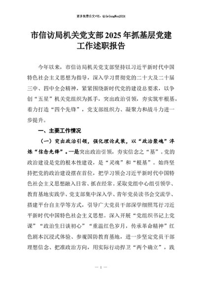 / 【七哥公文】2025年:市信访局机关党支部2025年抓基层党建工作述职报告+更多免费公文+VX:QiGeGongWen2024