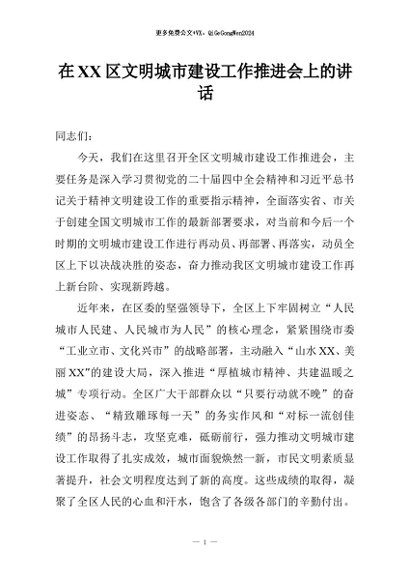/ 【七哥公文】2025年:在XX区文明城市建设工作推进会上的讲话+更多免费公文+VX:QiGeGongWen2024