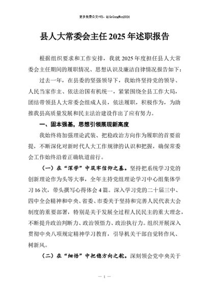 / 【七哥公文】2025年:县人大常委会主任2025年述职报告+更多免费公文+VX:QiGeGongWen2024