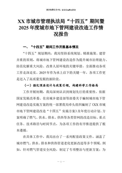 【七哥公文】2025年:XX市城市管理执法局“十四五”期间暨2025年度城市地下管网建设改造工作情况报告+更多免费公文+VX:QiGeGongWen2024