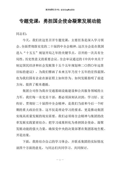 / 【七哥公文】2025年:专题党课:勇担国企使命凝聚发展动能+更多免费公文+VX:QiGeGongWen2024