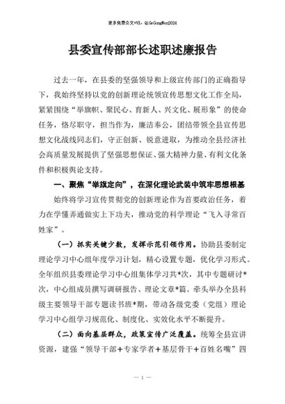 / 【七哥公文】2025年:县委宣传部部长述职述廉报告+更多免费公文+VX:QiGeGongWen2024
