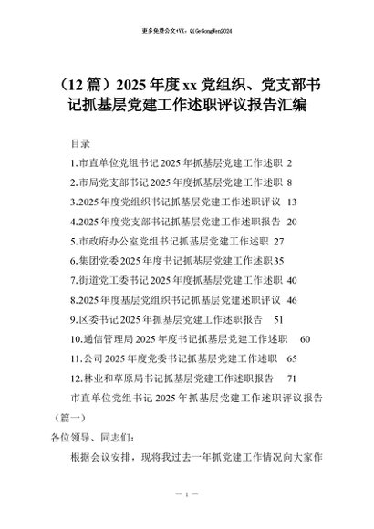 【七哥公文】2025年:(12篇)2025年度xx党组织、党支部书记抓基层党建工作述职评议报告汇编+更多免费公文+VX:QiGeGongWen2024