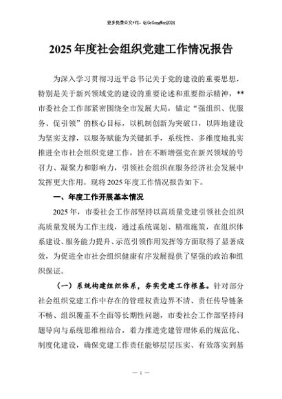 / 【七哥公文】2025年:2025年度社会组织党建工作情况报告+更多免费公文+VX:QiGeGongWen2024