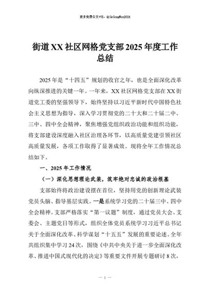 / 【七哥公文】2025年:街道XX社区网格党支部2025年度工作总结+更多免费公文+VX:QiGeGongWen2024
