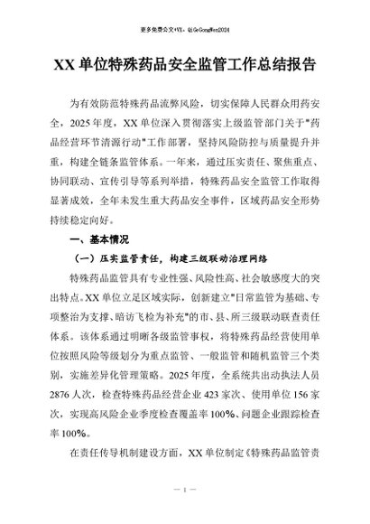 / 【七哥公文】2025年:XX单位特殊药品安全监管工作总结报告+更多免费公文+VX:QiGeGongWen2024