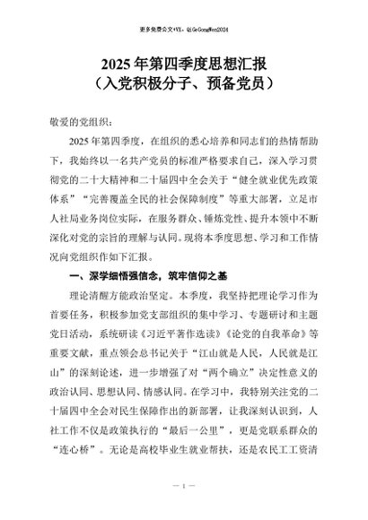 【七哥公文】2025年:2025年第四季度思想汇报(入党积极分子、预备党员)+更多免费公文+VX:QiGeGongWen2024