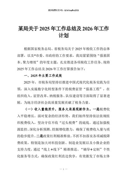 / 【七哥公文】2025年:某局关于2025年工作总结及2026年工作计划+更多免费公文+VX:QiGeGongWen2024