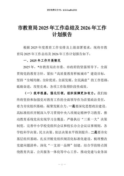 【七哥公文】2025年:市教育局2025年工作总结及2026年工作计划报告+更多免费公文+VX:QiGeGongWen2024