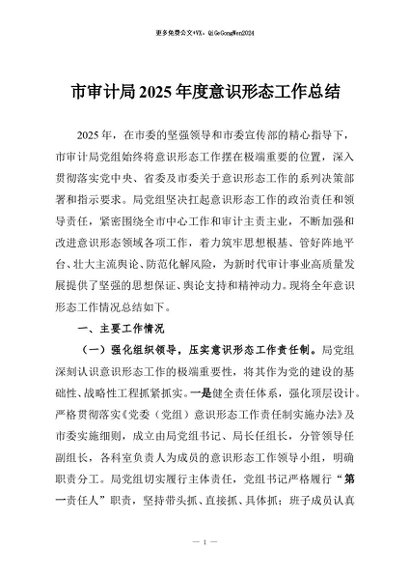 / 【七哥公文】2025年:市审计局2025年度意识形态工作总结+更多免费公文+VX:QiGeGongWen2024