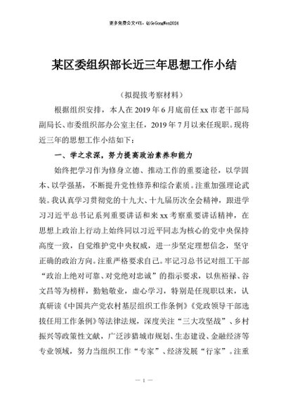 / 【七哥公文】2025年:某区委组织部长近三年思想工作小结+更多免费公文+VX:QiGeGongWen2024