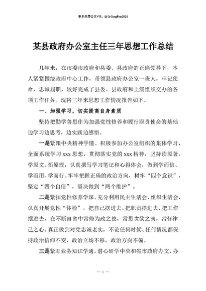 / 【七哥公文】2025年:某县政府办公室主任三年思想工作总结+更多免费公文+VX:QiGeGongWen2024