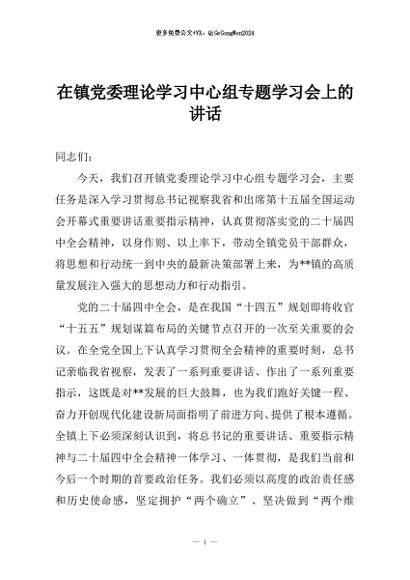 / 【七哥公文】2025年:在镇党委理论学习中心组专题学习会上的讲话+更多免费公文+VX:QiGeGongWen2024