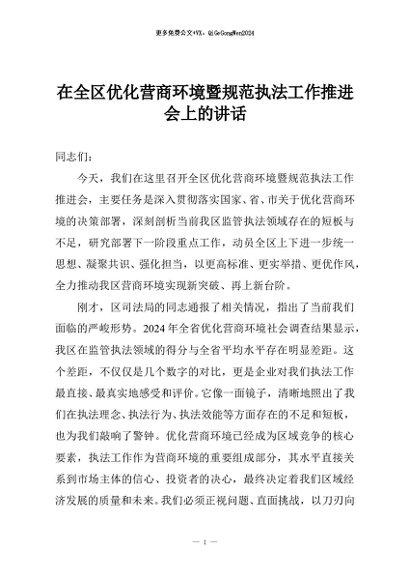 / 【七哥公文】2025年:在全区优化营商环境暨规范执法工作推进会上的讲话+更多免费公文+VX:QiGeGongWen2024
