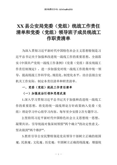 【七哥公文】2025年:XX县公安局党委(党组)统战工作责任清单和党委(党组)领导班子成员统战工作职责清单+更多免费公文+VX:QiGeGongWen2024
