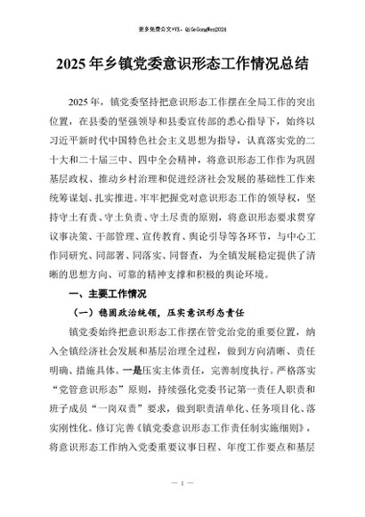 / 【七哥公文】2025年:2025年乡镇党委意识形态工作情况总结+更多免费公文+VX:QiGeGongWen2024