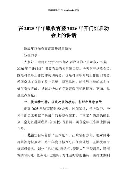 【七哥公文】2025年:在2025年年底收官暨2026年开门红启动会上的讲话+更多免费公文+VX:QiGeGongWen2024