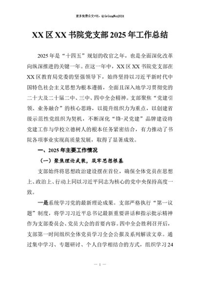 / 【七哥公文】2025年:XX区XX书院党支部2025年工作总结+更多免费公文+VX:QiGeGongWen2024