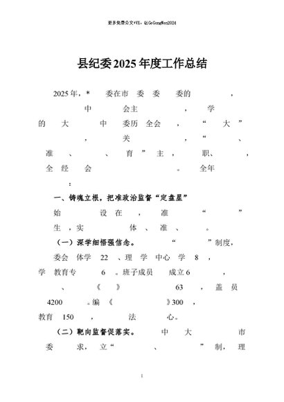 / 【七哥公文】2025年:县纪委2025年度工作总结+更多免费公文+VX:QiGeGongWen2024