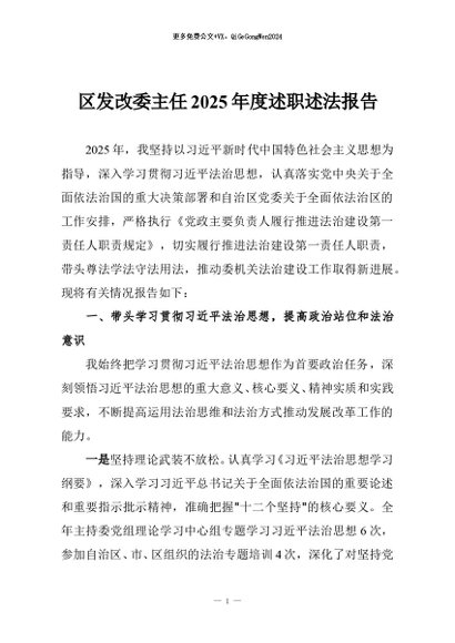 / 【七哥公文】2025年:区发改委主任2025年度述职述法报告+更多免费公文+VX:QiGeGongWen2024