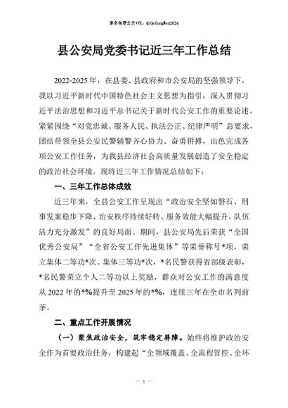 / 【七哥公文】2025年:县公安局党委书记近三年工作总结+更多免费公文+VX:QiGeGongWen2024